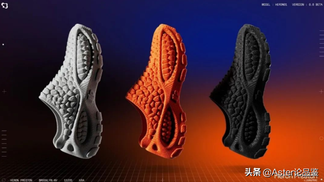 德国新兴科技公司Zellerfeld通过3D打印技术,先后与Heron Preston、AMBUSH合作推出鞋款,把仿生设计与先进的鞋履制作概念相结合,让拖鞋市场迸发出巨大的潜力。