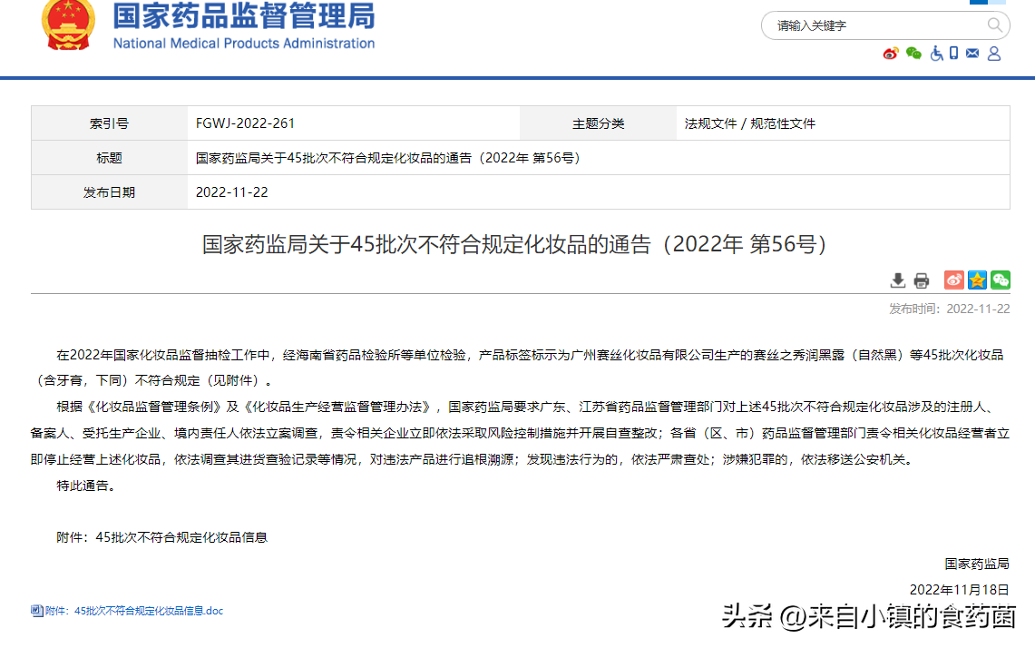 药监局关于45批次不符合规定化妆品的通告(2022年 第56号)