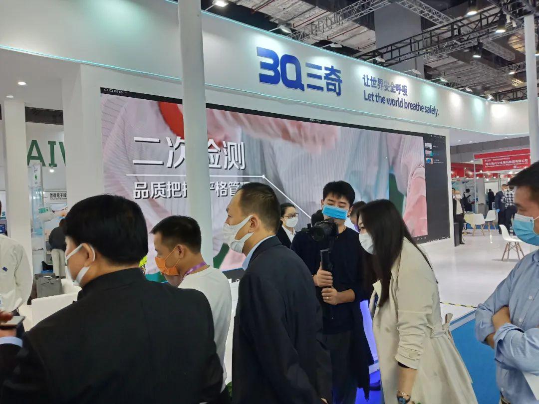 上午9点,号称“四叶草”的上海·会展中心里人头攒动,经过体温检测、健康码检查,大量观众融入展厅,参与这一国内高级别的医疗器械展。在5.1馆的三奇展位前,一块10米宽的大屏幕让很多观众驻足观看,滚动播放的视频仿佛把人们又拉回到疫情爆发初期那段紧张的岁月。同时,140多平米的展位,展示了三奇旗下的众多产品。