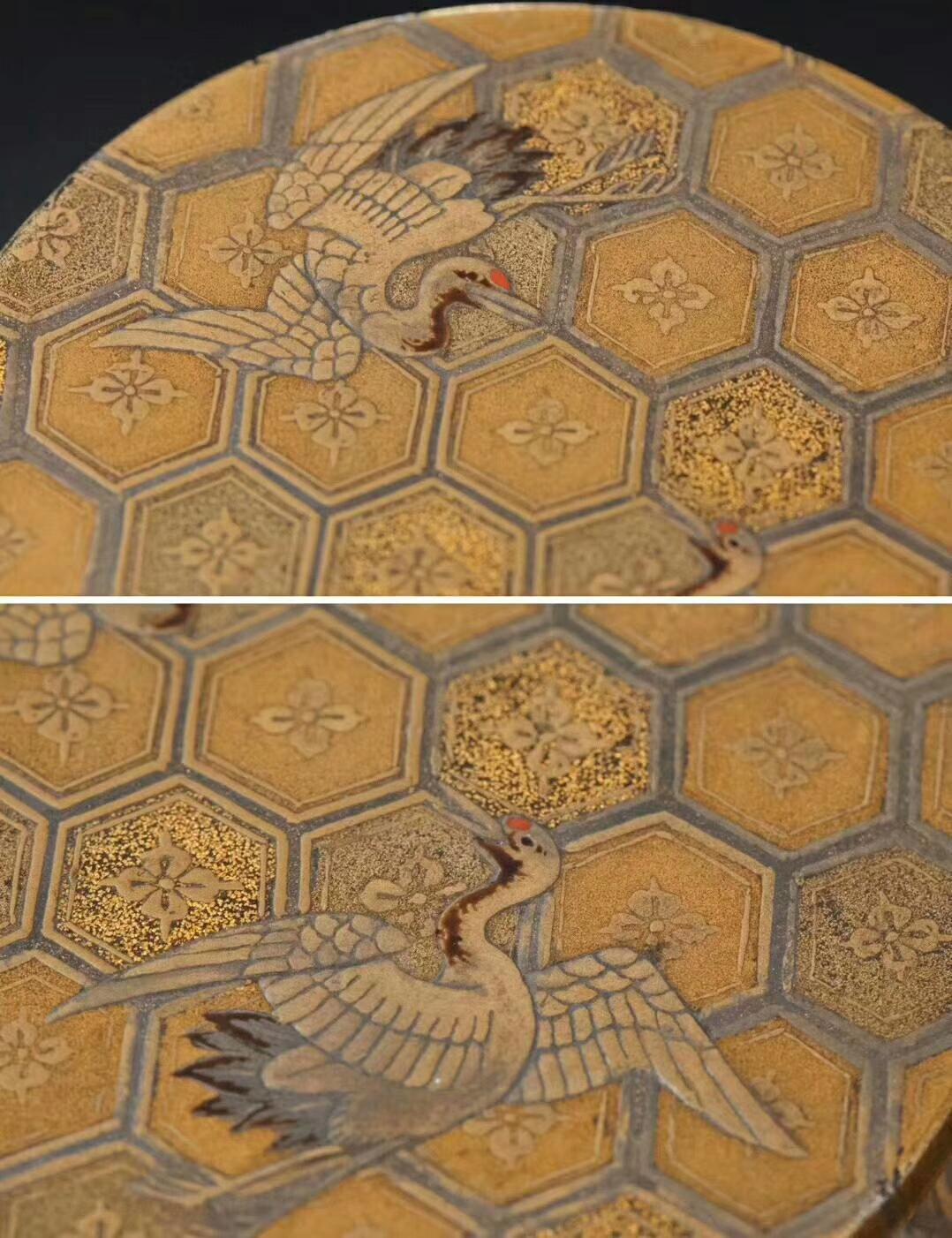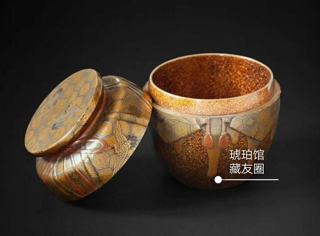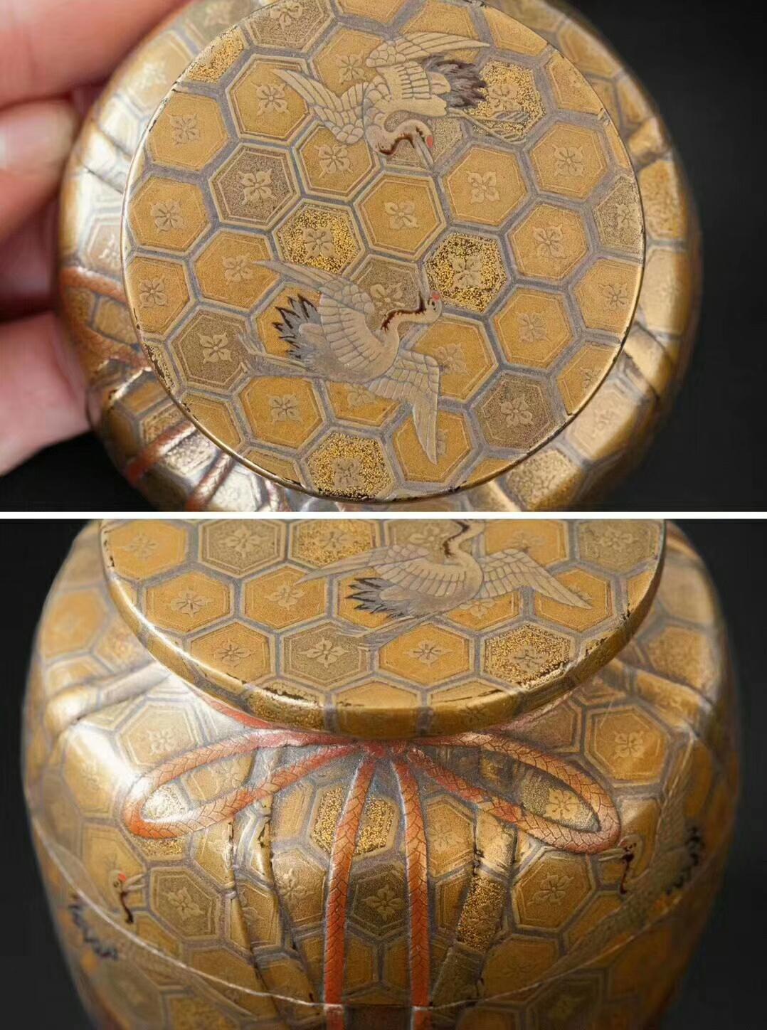这一枚玲珑精巧的梨地莳绘茶叶罐出自18世纪末,已在日本和法国之间,走过200多年岁月,却仍以瑰丽姿态,留存江户时代的匠人精神。独特罕见的器形上,可见寓意吉祥的瑞鹤,纹样精细雅致,完好保留原配红盒,不仅端丽、高雅,更极具仪式感,收藏价值极高。