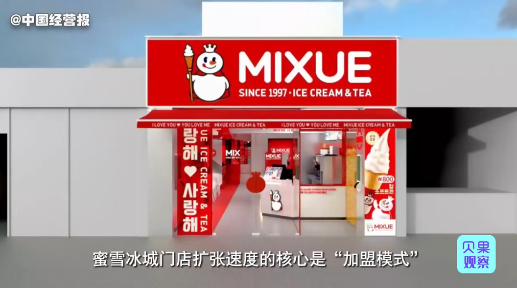 值得注意的是,蜜雪冰城的品牌营销不容忽视。其打造的雪王IP,依靠“街溜子”等耍宝视频加深了用户印象,一首雪王“神曲MV”更是洗脑了人。这次在韩国开店,韩文版的“你爱我,我爱你”洗脑上线,雪王在韩国街头散步的视频,引发了韩国朋友好奇。