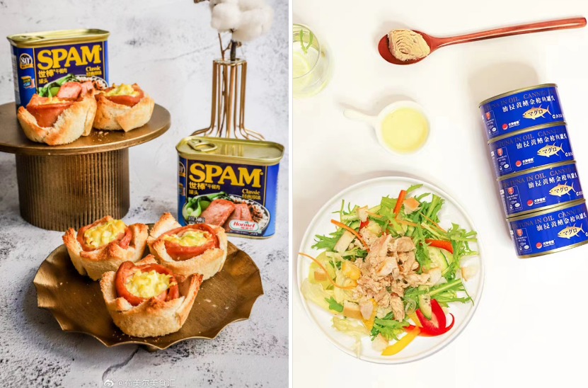大洋世家鱼罐头、荷美尔世棒午餐肉 图片来源:大洋世家天猫旗舰店、微博@荷美尔美食汇