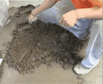 第二步:砂浆要干湿适度,标准是"手握成团,落地开花",砂浆摊开铺平