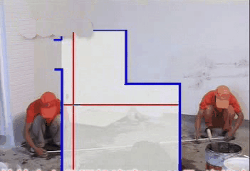 原则三:预排规划好了,还要纵横拉两条基准线,有了基准线,才能这个房间的地砖贴得规矩。