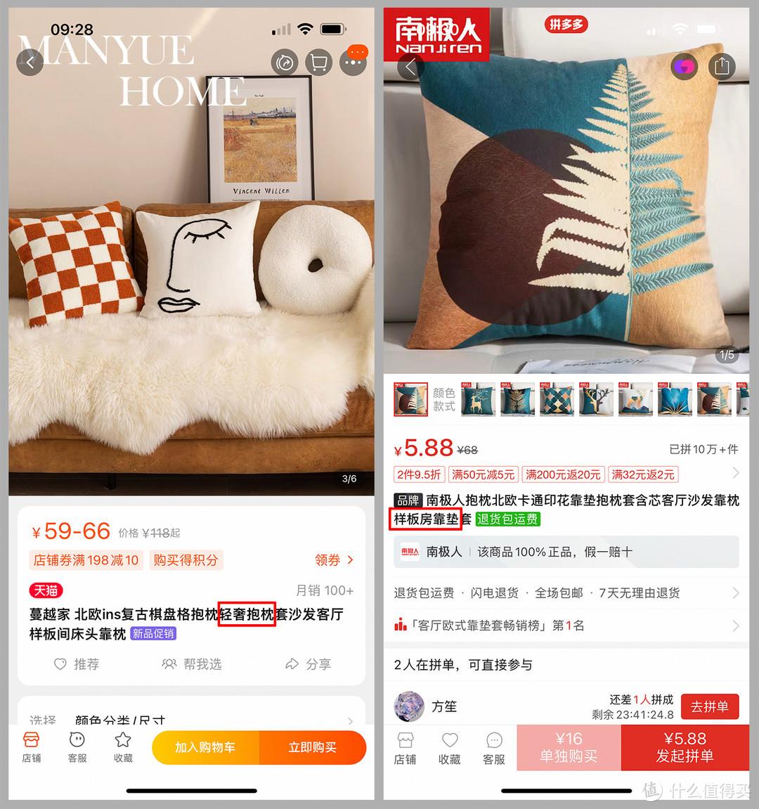 二、软装篇1.轻奢风抱枕 VS 酒店样板间抱枕