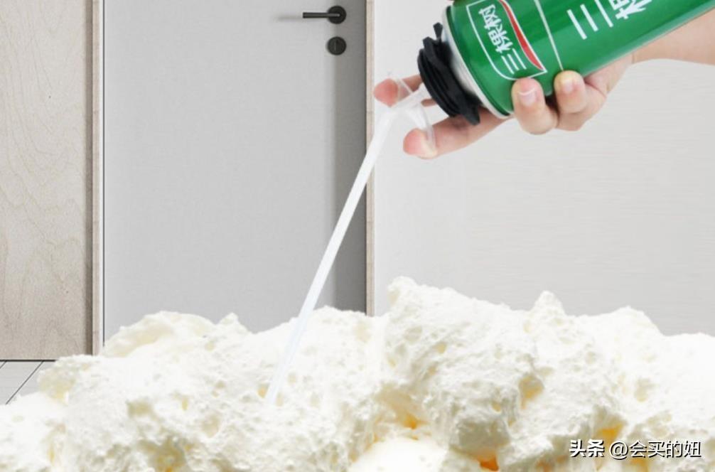 二、发泡胶发泡胶也是装修中经常会用到的一种材料,通常作为粘合以及填补空隙,比如门窗固定、管道填缝、填充等,有隔音和保温的作用。