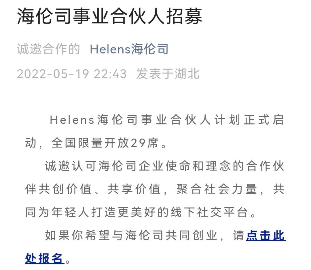第二,重新开放加盟。海伦司2018年确立直营模式后,到上市前的2021年第一季度,其门店全部转为了直营店。今年随着疫情带来的压力加大,海伦司在5月份比较谨慎地重新开放加盟。当时“限量开放29席”,对于800多家店的体量来说不算什么,但指向性则再不过,那就是海伦司不会再死守直营——而这也是现在很多全直营的品牌开始考虑的。