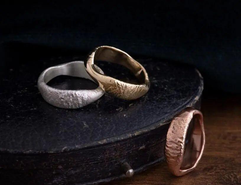 因为他认为:“木目金的特殊纹理决定了每一枚戒指都是的,它的纹路就像指纹或雪花,让我一直坚持使用它的原因是它的自然美感和制作难度,充满了不确定性,我喜欢这种挑战和惊喜。”