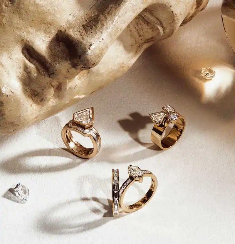 因为她希望拥有一种更温暖,绿色调更少的 18K黄金,其实这种色调差异微妙,但她坚持要用一种更柔软温和的金属为客户设计那些带有情感含义的珠宝。显然,那些找她定制婚戒的情侣很能欣赏这精细的差异。