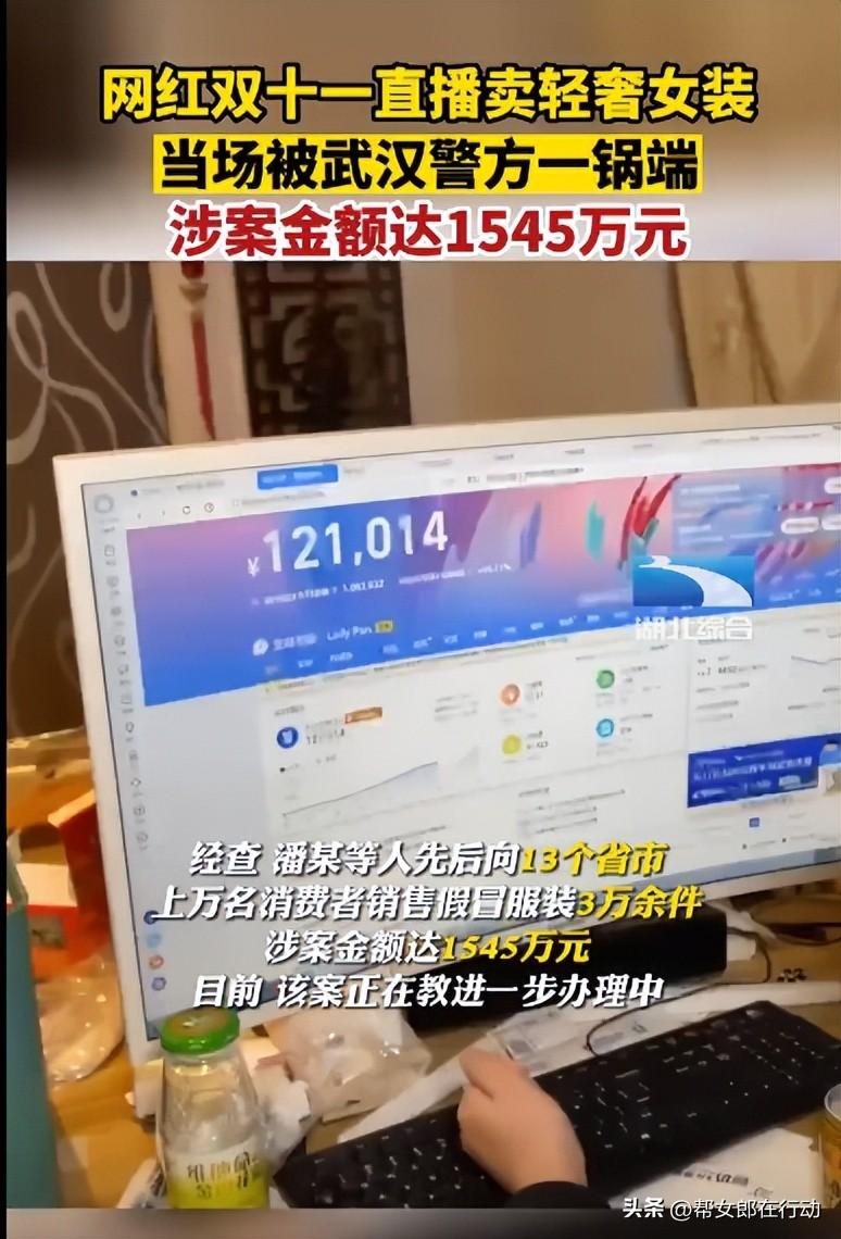 网红#双十一#直播卖轻奢女装假货,当场被武汉警方一锅端,向13个省销售约3万件,涉案金额达1545万元。