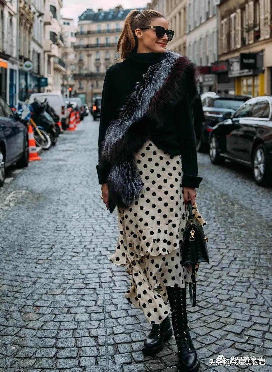 皮草点缀常见的就是翻领点缀,好系上腰带,不挑人,皮草大V领占据视觉重点,又显瘦又显高。