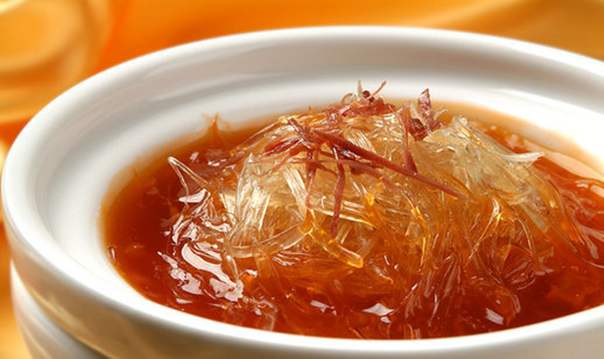 肥膘稍有黄色,具有咸肉固有的风味。成菜后色泽金黄,入口留香。