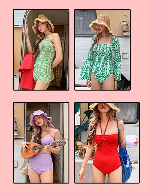 同时他家的泳装也很清新可爱,分体连体、碎花格纹、性感可爱,应有尽有。