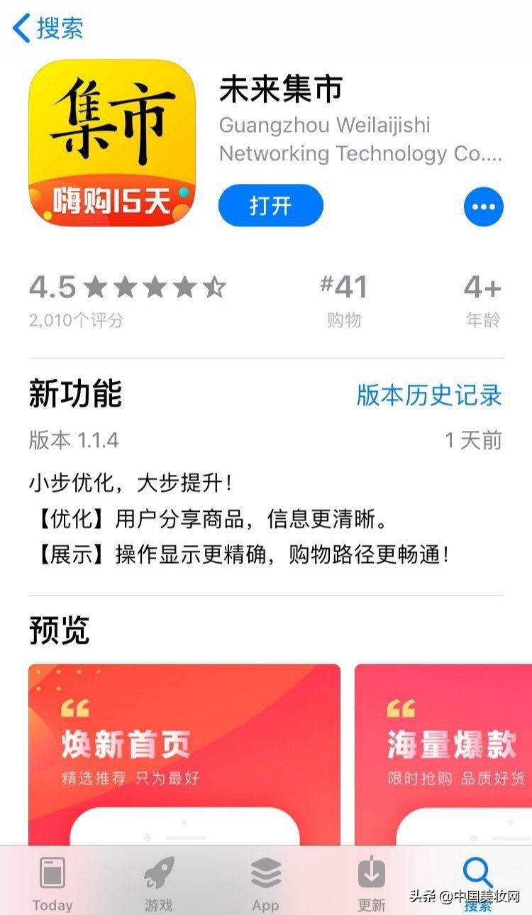 中国美妆网记者在App Store搜索“未来集市”,呈现的界面如下(2019年6月27日):