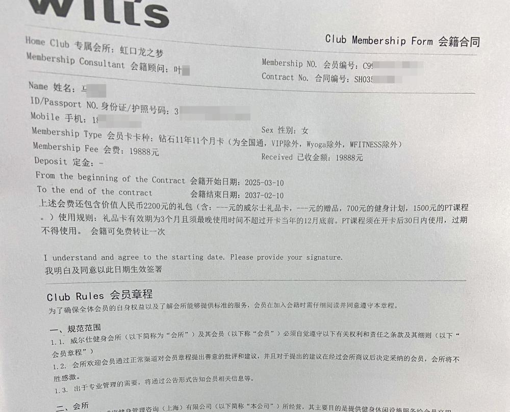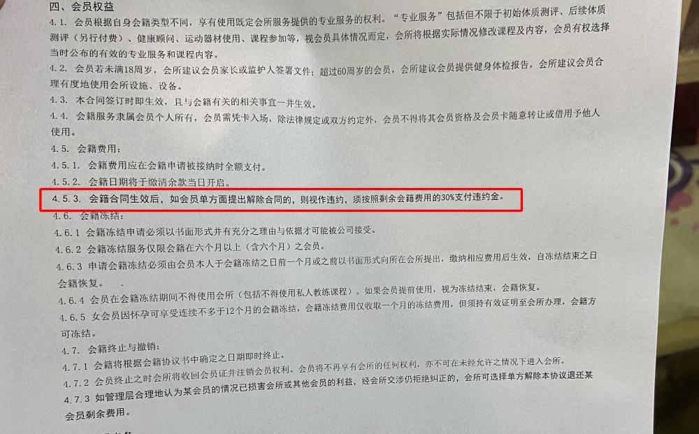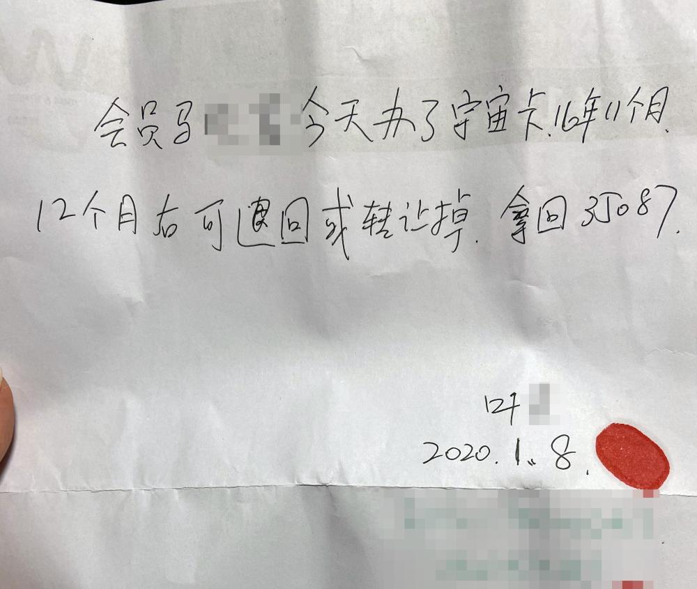 马女士称,签字时对方不断催促,她并未仔细逐条阅读条款,只草草确认了会籍长短。签完后细看发觉不对,合同中明明写有“解约要支付30%违约金”“会籍卡转让也需要支付15%”,而叶某的一年退卡承诺只字未提。她当即找到叶某交涉,对方随即又手写了一份承诺书,承诺马女士12个月后可退卡或转让。