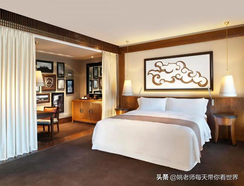 设计师采用了不少藏式元素和色彩,巧妙地将其中过于繁杂的元素提炼出来。比如客房顶上的祥云、大堂壁画上一些金光闪烁的点缀物,都将藏式的缤纷热闹化为低调的奢华感。