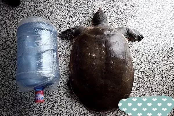 ③:2018年,湖南省永昌水上综合服务公司的员工,在湘江湘潭段用清洁船打捞水上垃圾时,捡到一只约1米长,25公斤重,大约有200年的巨型中华鳖。