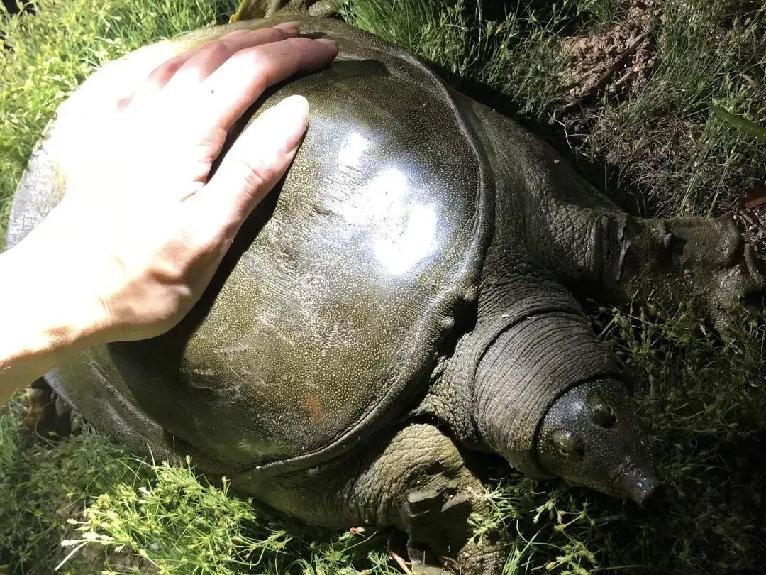 为了生存,一些行动迟缓的巨鳖,不得不趁夜色上岸寻找食物。比如一些昆虫、蛙类、水鸟蛋等,都是它们上岸寻找的食物。