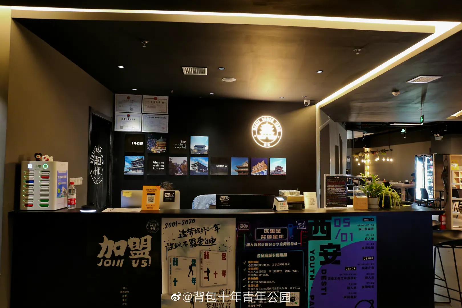 更棒的是,公共空间的酒吧、图书馆、台球、午夜电影、摄影展、室内室外放映室、文创,每晚不同的活动,从脱口秀到狼人杀到音乐会。背包从不吝啬空间,每家店的公共区域总是很大,尽可能多的丰富活动,每种性格的都能找到合适的圈子加入。