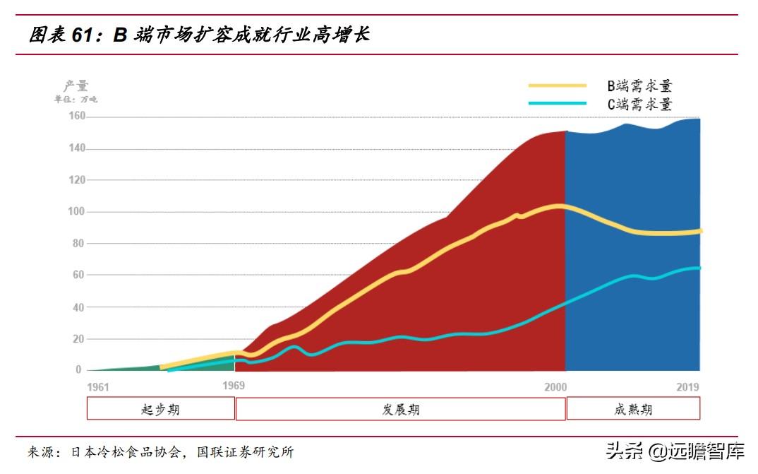 通过复盘日本速冻食品行业发展过程,发现 B 端市场渗透率的提升是推动整体速冻行业发展的源动力。