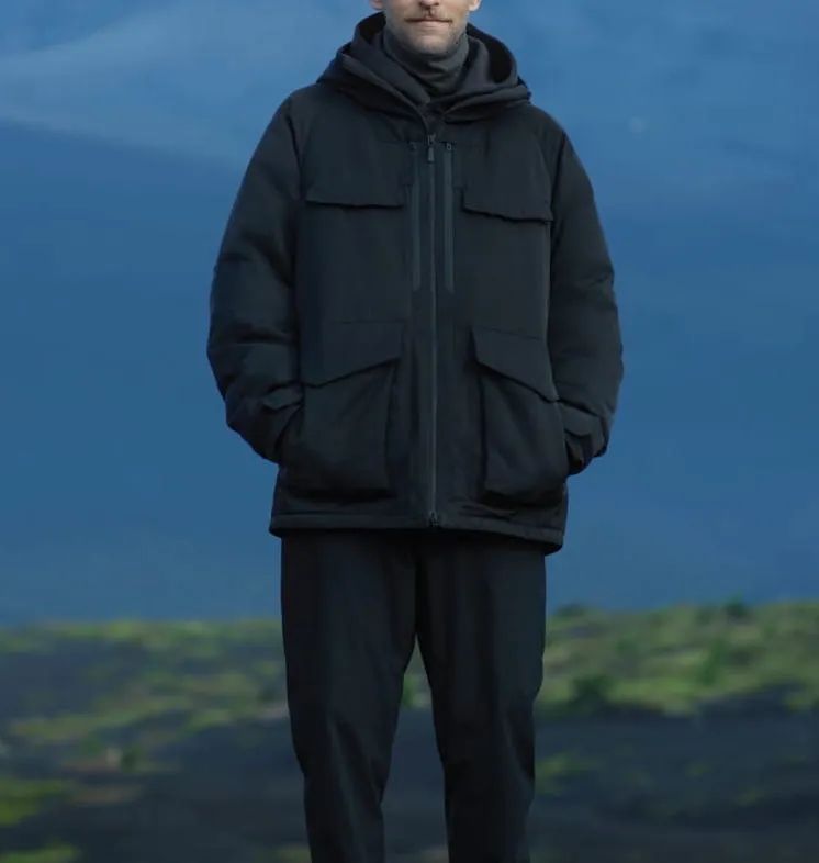 在剪裁上,山系服装同样平衡了美感与功能性。比如额外加高的领口、加入松紧带或罗纹设计的袖口、可以调节的后领和下摆,这些设计不仅能更好地减少冷风的进入,也颇具机能美感。