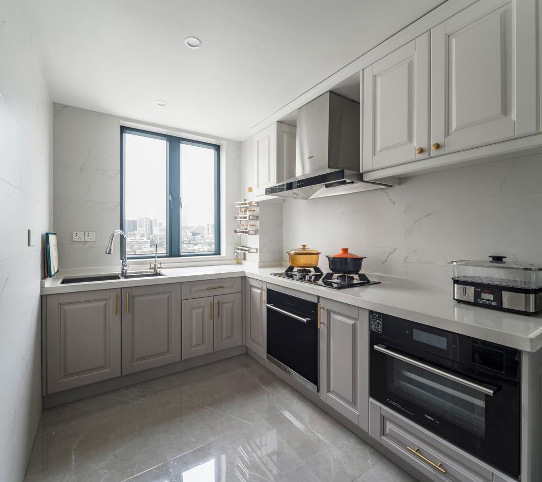 五、橱柜的动线规划厨房动线是什么?厨房动线指的就是从洗菜、切菜、炒菜、放盘这样一系列的路线,要让厨房的动线更加流畅,那就要从厨房的空间布局说起,橱柜的布局要根据厨房的户型和空间大小来设计,常见的有U型、L型、一字型、二字型的橱柜。