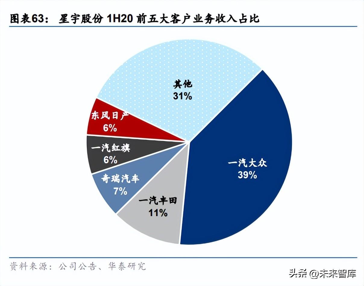星宇股份是国内领先的汽车车灯总成部件和设计方案的提供商,通过持续拓展客户和提升 研发能力加速国产化替代进程。公司自 1993 年成立起,专注于汽车车灯的研发和制造, 目前产品已覆盖汽车前照灯、后组合灯、雾灯、日间行车灯、室内灯、氛围灯等。经 过十数年技术积累,公司形成了从模具、工装专机、车灯电子、到车灯总成等环节的完整 同步设计开发能力,能够快速相应客户需求,陆续配套一汽-大众、上汽大众、宝马、 通用、一汽丰田、广汽丰田、东风日产、广汽本田、东风本田、长安马自达等国际强势品 牌。而在自主品牌后来居上,市场份额快速突破之际,公司也及时响应,切入吉利汽车、 广汽乘用车、奇瑞汽车、蔚来汽车、小鹏汽车、理想汽车等国产车企的供应链,客户结构 进一步优化升级。