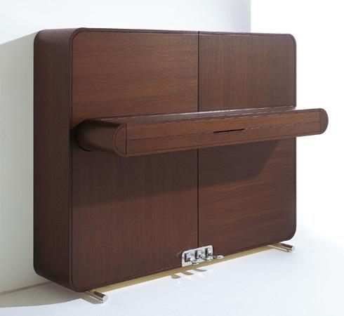 圆润的外壳包裹着钢琴。稍向内错位的设计让顶盖能更轻松地打开。沟槽构成了一幅个性的线条画。