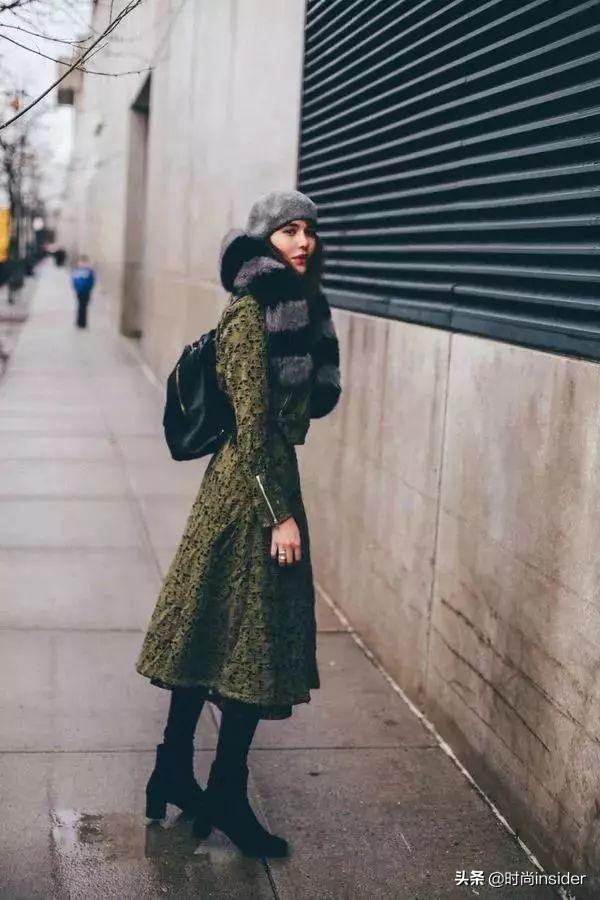 钟爱皮草的90后不止Suki Waterhouse一个,时尚博主Natalie Suarez一进入12月份也迫不及待的把皮草围脖穿上身了。身穿军绿蕾丝套装,搭配条纹皮草围脖和贝雷帽外出,造型复古又带有一丝甜美。