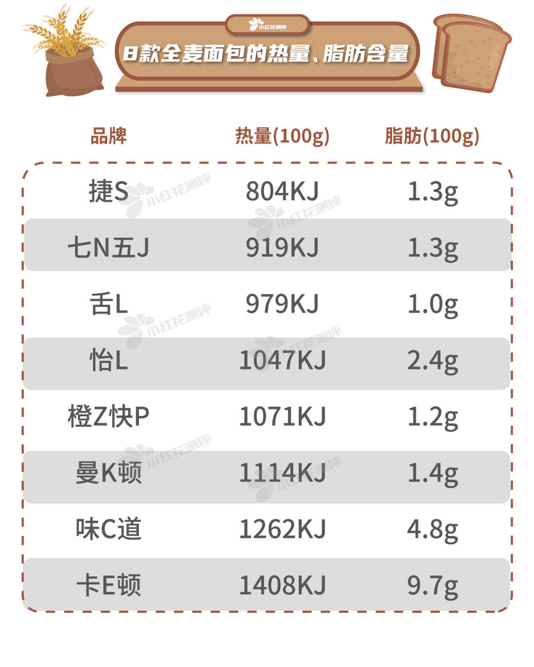 “小红花测评”公众号后台回复“全麦面包”查看完整样品信息
