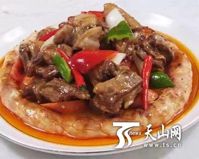 则是馕配辣椒酱或者馕夹着烤肉吃