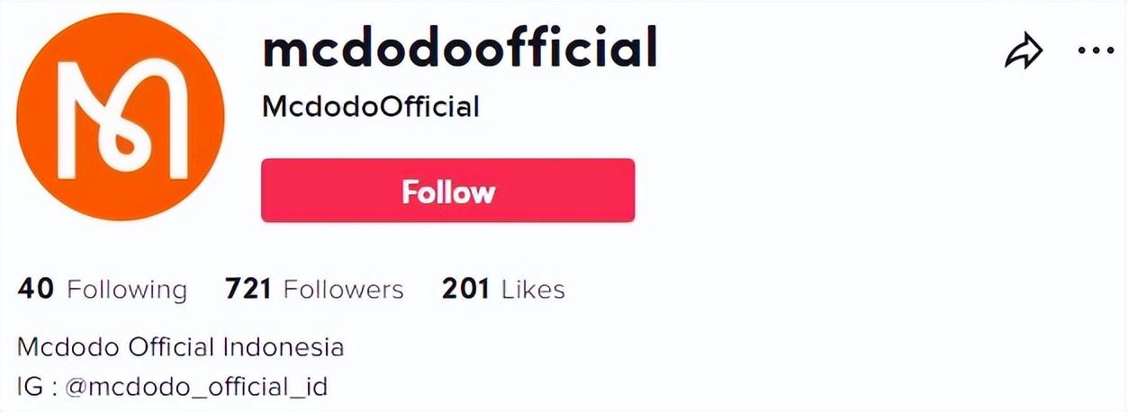 粉丝数量排行第八的是 Mcdodo 麦多多,账号名称 mcdodoofficial,粉丝数为 721 名,获赞 201 次。