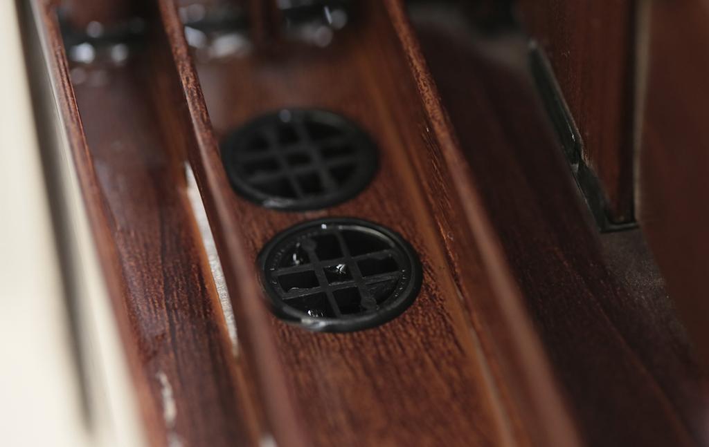 全天候气密窗大特色是研发的专利「排水系统」,面对台风大雨与其「围堵」不如「疏导」。 在气密窗的下台预留适当排水孔,雨水经由内部空心结构使水排出,出口排水阀片利用风压与水力自动控制开关,大风大雨水都不倒灌; 因得益排水系统,全天候的窗扇轨道为平阶设计,使得窗扇可以向室内面拆卸,在安装与清洁上十分。