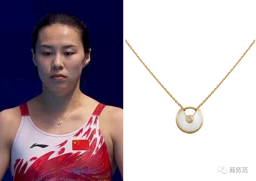 双人三米板王涵在比赛时,则戴了一枚来自卡地亚的AMULETTE DE CARTIER项链,这款以符为灵感设计的珠宝,有着幸运、平安的美好寓意,感觉是妥妥的“符”了 ...
