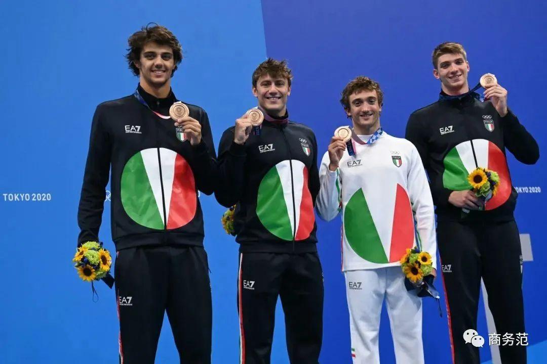 领奖服都来自EA7 Emporio Armani系列,早在2019年就发布了。阿玛尼老爷子解释说:圆形的意大利国旗,是基于日本国旗的设计。