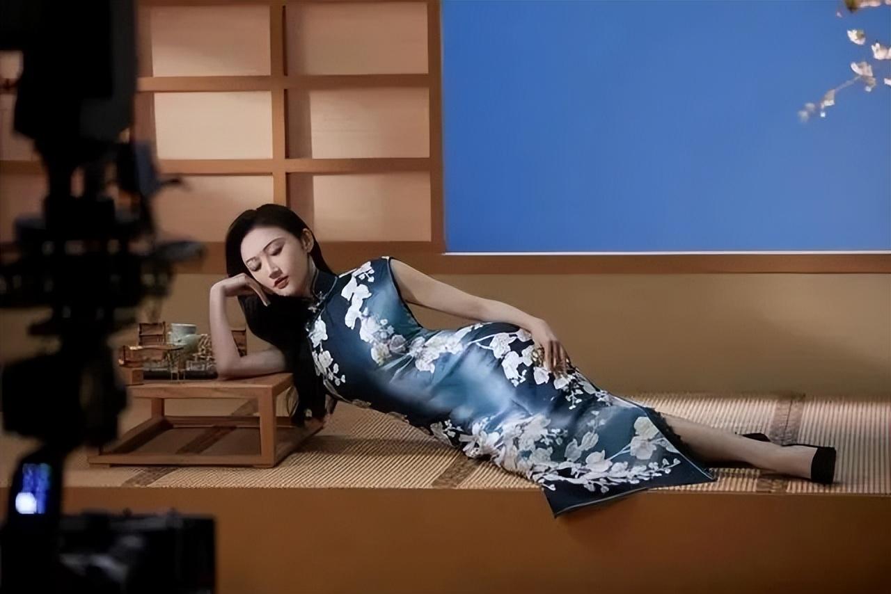 近一次景甜拍摄了一组旗袍照,照片中景甜身穿蓝色墨花旗袍裙。蓝色的布料加上白色的花,简单大方,加上景甜优美的体态,显得她气韵高贵。