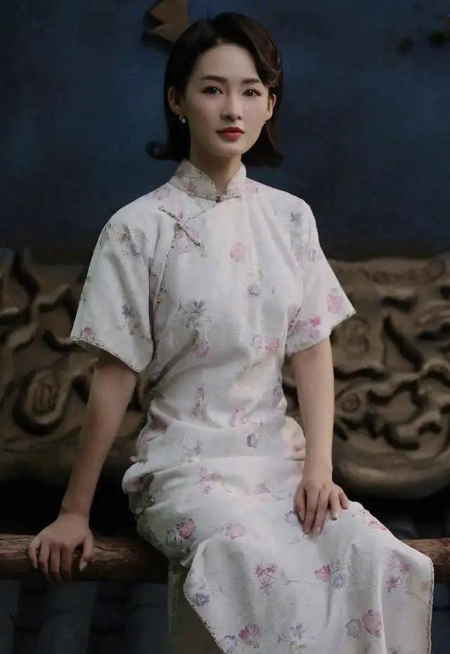 早些年她出演的电视剧《芝麻胡同》里身穿一袭红色印花的旗袍装亮相,虽然这件旗袍