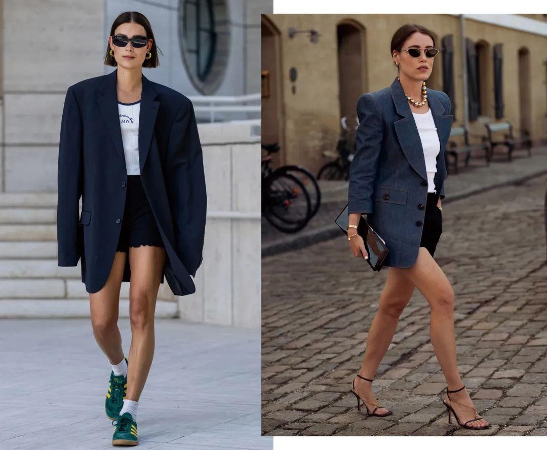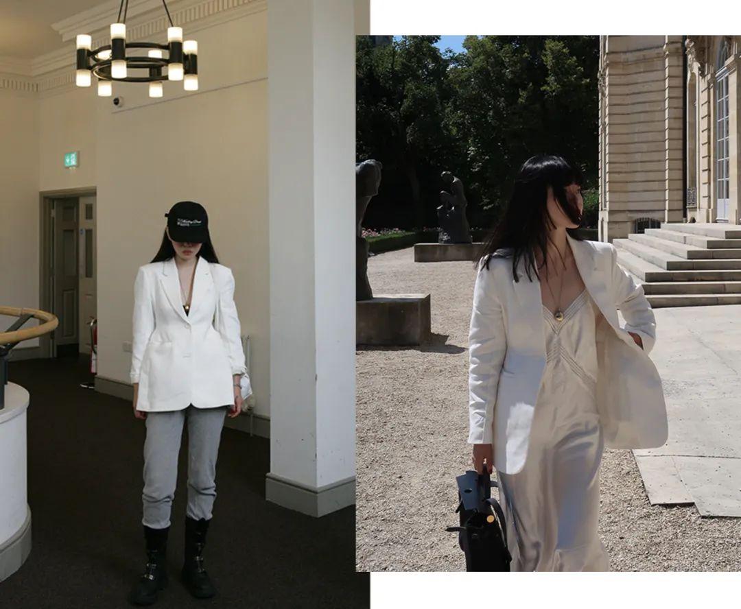时装周恢复以后,真的好多养眼的街拍可以找灵感哦!“下衣失踪”和宽大西装外套就是绝配。
