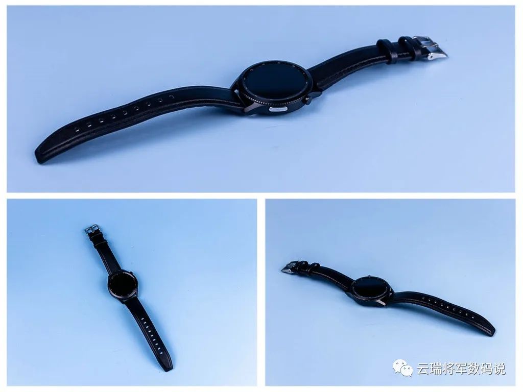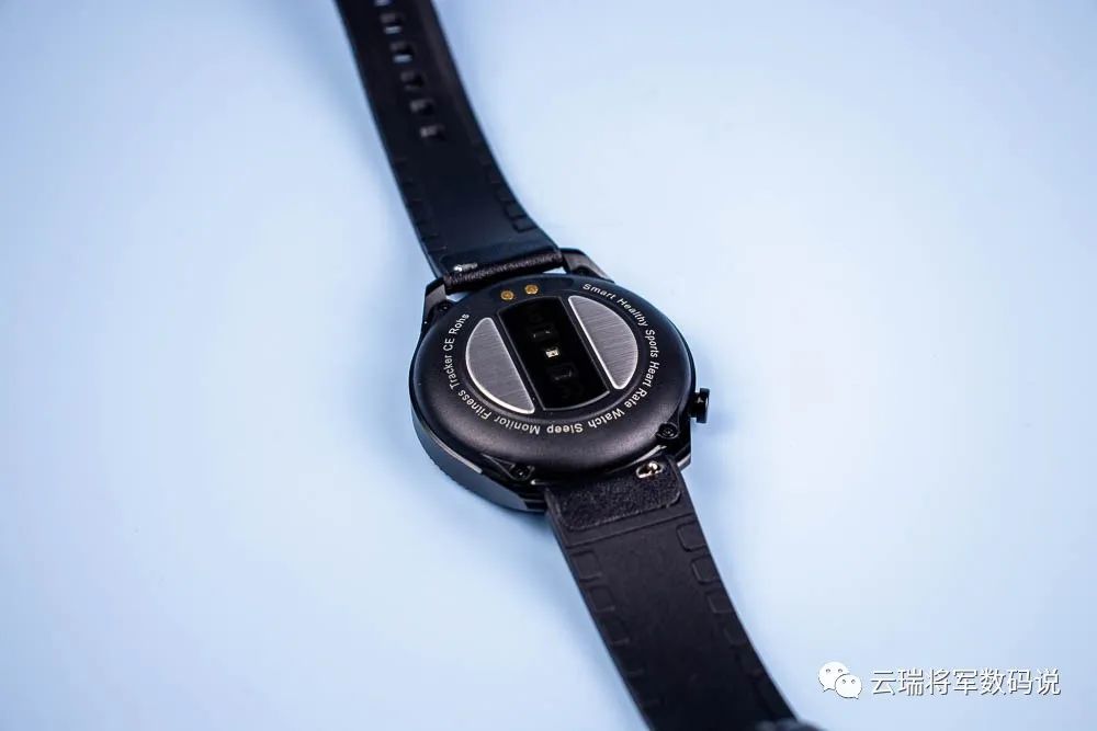 黑色给人一种神秘深沉的感觉,特别是黑色皮质的表带,更是给人一种传承的岁月感,现在的智能手表大都采用有机硅材料的表带,当然这款手表也有,但是喜欢传统表带的用户,完全可以选择传统的棕色或者是黑色皮质表达,与传统的表达一样,都打有九个孔,卡扣式的设计,保持着传统的样式,的差别可能就是以前用的是机械或者石英表,现在是智能表,比以前的表功能更强大。从外观上,看不出太大的区别,除了表上有一块银白色的电极触点,其他的和普通的手表基本上是同样的设计,只是旋钮不再是调整时间,而是相当于返回键,按一下返回或者退出,旋转并没有其他的用途,不会像以前的表那样改变指针,智能表的时间大都是通过网络自动对时的,无需人工干预,在联网状态下也不会有太大的时间差异。