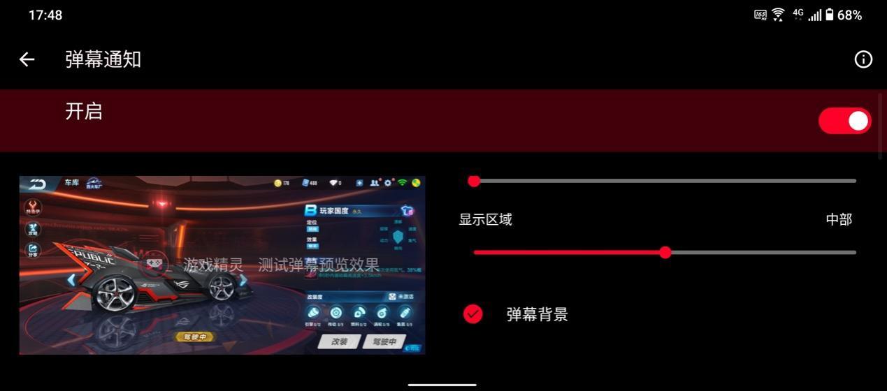 另一类设置开关则需要进入子菜单进行个性化精细设置,来满足玩家更深层次的游戏体验和需求。比如弹幕通知会以浮动弹幕形式显示其它 App 的消息,不错过任何一个通知。