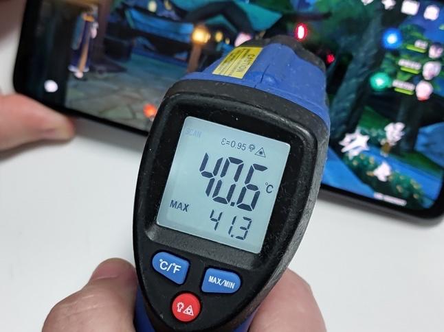 20 分钟跑图后,手机正反面的高温度分别为 41.3 度和 38.5 度,也只是微微温热水平,ROG 酷冷散热背夹虽然缺席,但看样子已经用不到它了,可见 ROG 对于 SoC 的性能调度优化还是很强的,一个性能模式开关,不需要其它复杂操作,就能征服原神 3.2 的须弥,不愧是玩家国度。