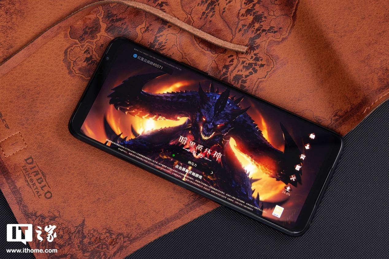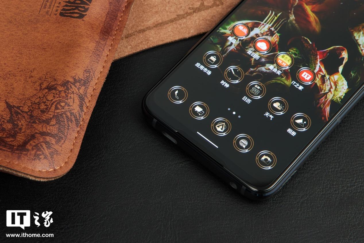 ROG6 暗黑破坏神: 不朽典藏限量版的正面采用了一块没有刘海 / 水滴 / 挖孔、上下边框等宽且视觉全对称的直屏。