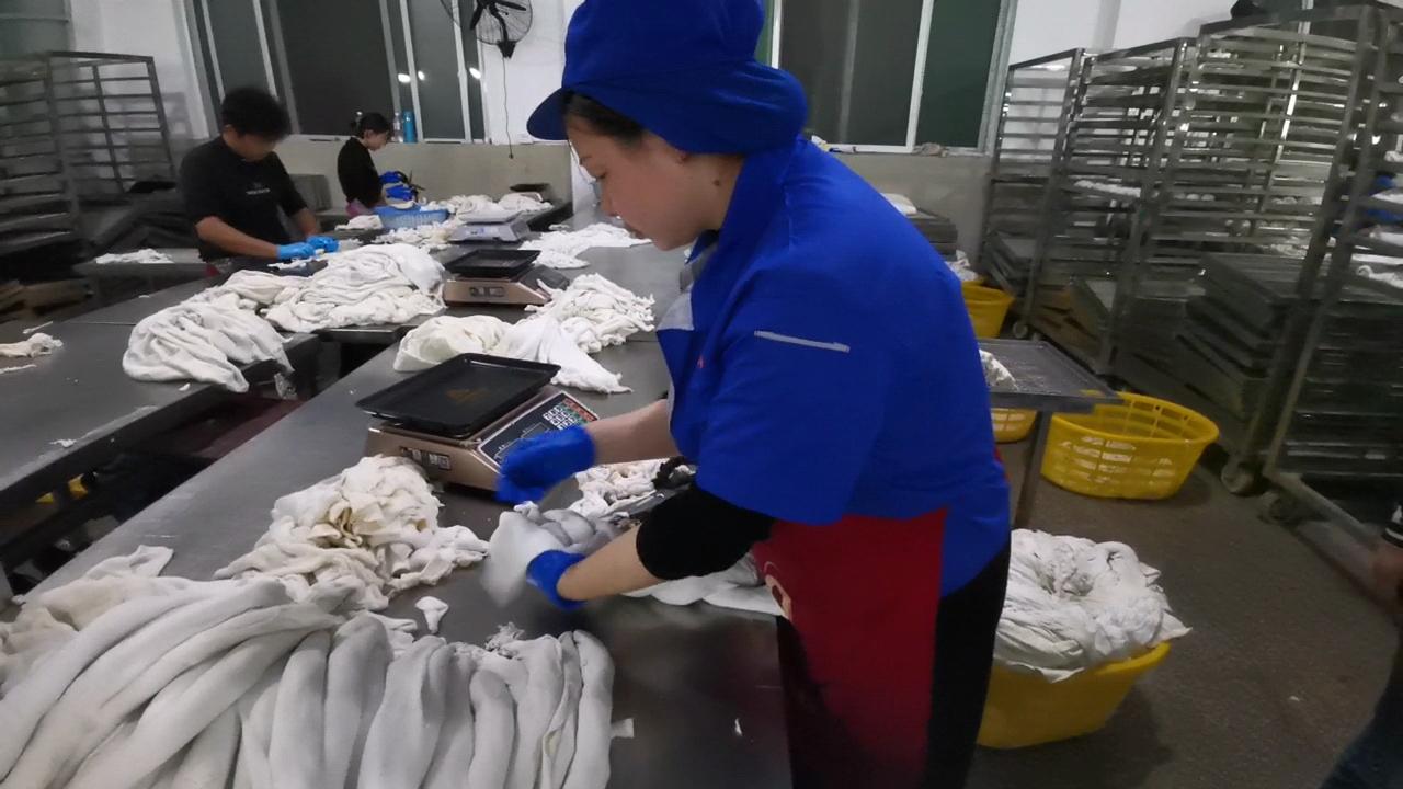 狗咬胶出海,只是小镇上的一个掠影。工作人员介绍,厂里产品主要是出口,每个月出口量大概四十个集装箱。