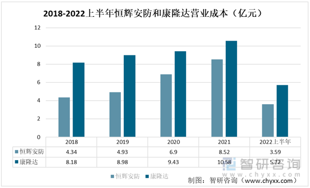 2018-2022上半年恒辉安防和康隆达营业成本(亿元)