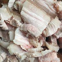 1. 五花肉先洗净冷水下锅,加料酒,生姜煮熟,去腥,煮熟戳起来凉一会儿切片。