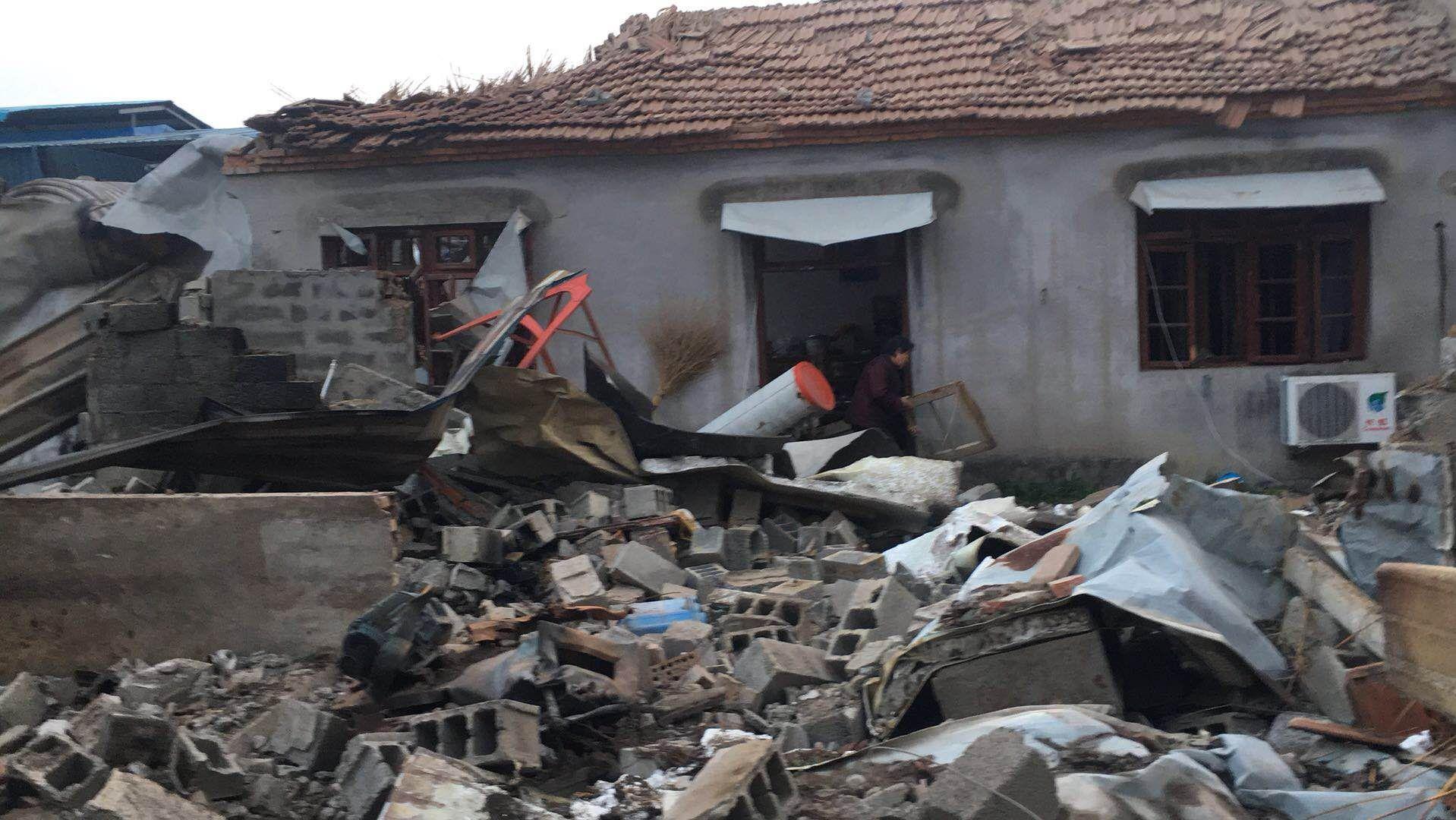 涉事企业周边民房不同程度受损,有些房子的门窗被震碎,防盗窗户掉在地上。房顶部分有砖块掉落。甚至有的村民家房顶被掀,院子中散落了一地建筑材料。