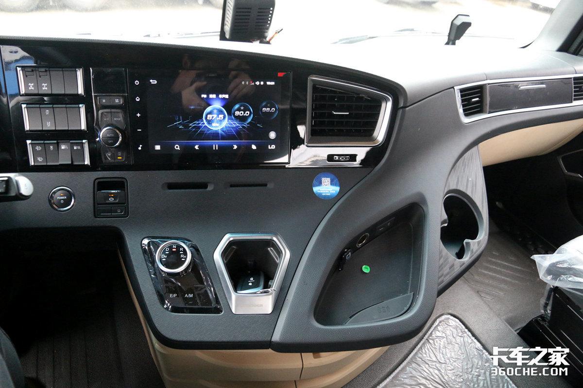 在变速箱方面,实拍车型采用了采埃孚12TX2620TD的12挡AMT变速箱,这款变速箱的传动率达到了99.7%,传动率越高意味着整车动力输出更加顺畅,动力表现也更加优异。
