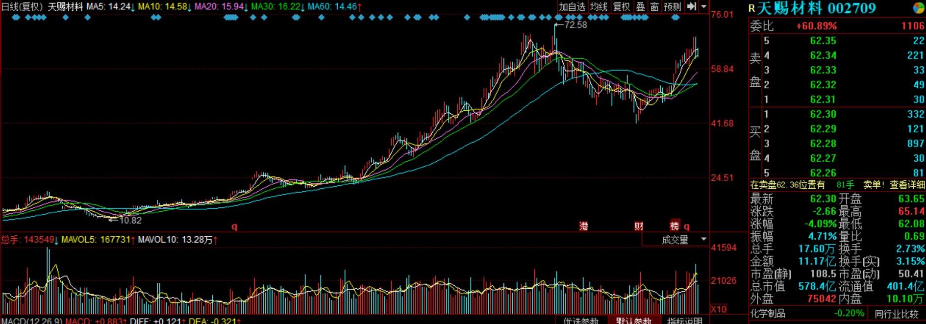 上市公司广州天赐高新材料股份有限公司(证券简称:天赐材料002709)于2014年1月登陆深交所中小板上市交易,公司主营精细化工新材料的研发、生产和销售,主要产品为锂离子电池材料、日化材料及特种化学品。