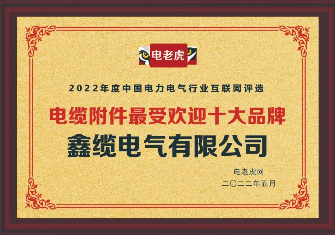 近日,鑫缆电气有限公司(以下简称“鑫缆电气”)参与了2022年度中国电力电气行业“十大品牌”系列评选活动并获得“电缆附件受欢迎十大品牌”荣誉称号。