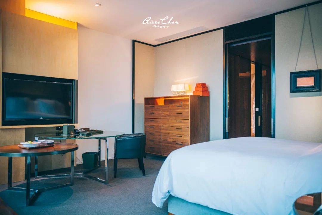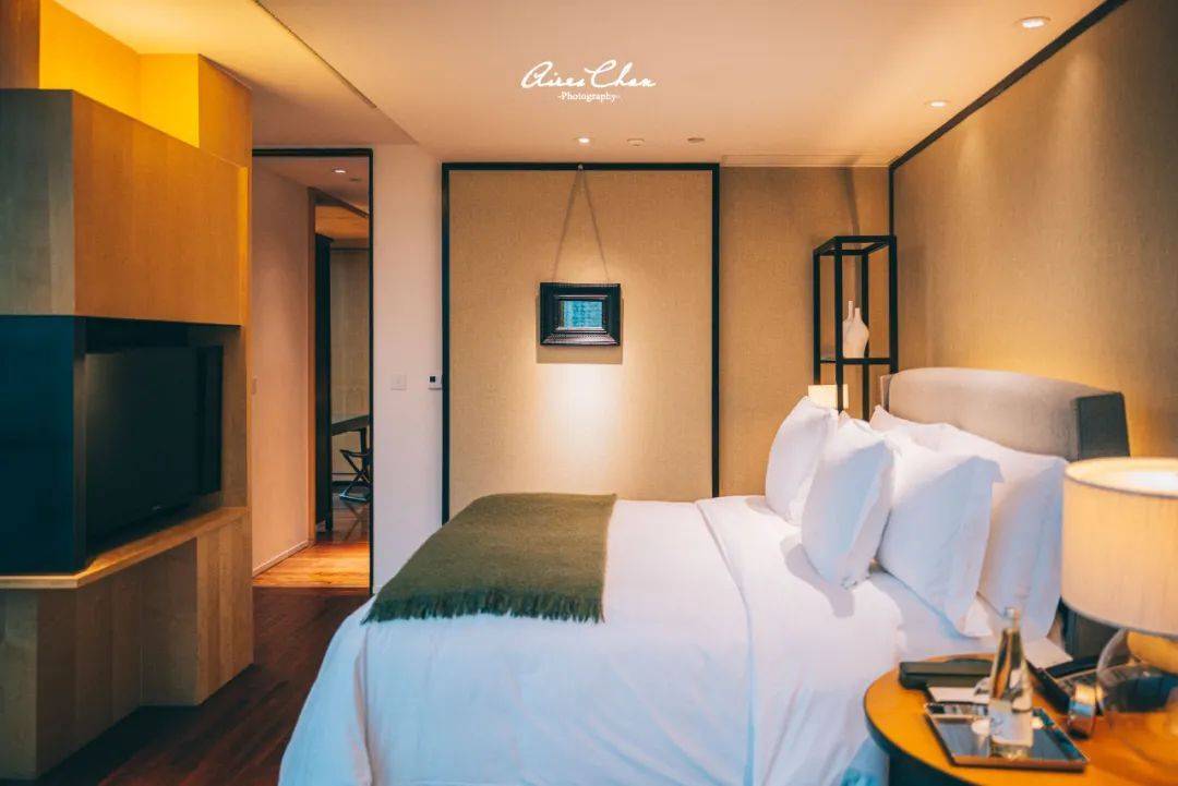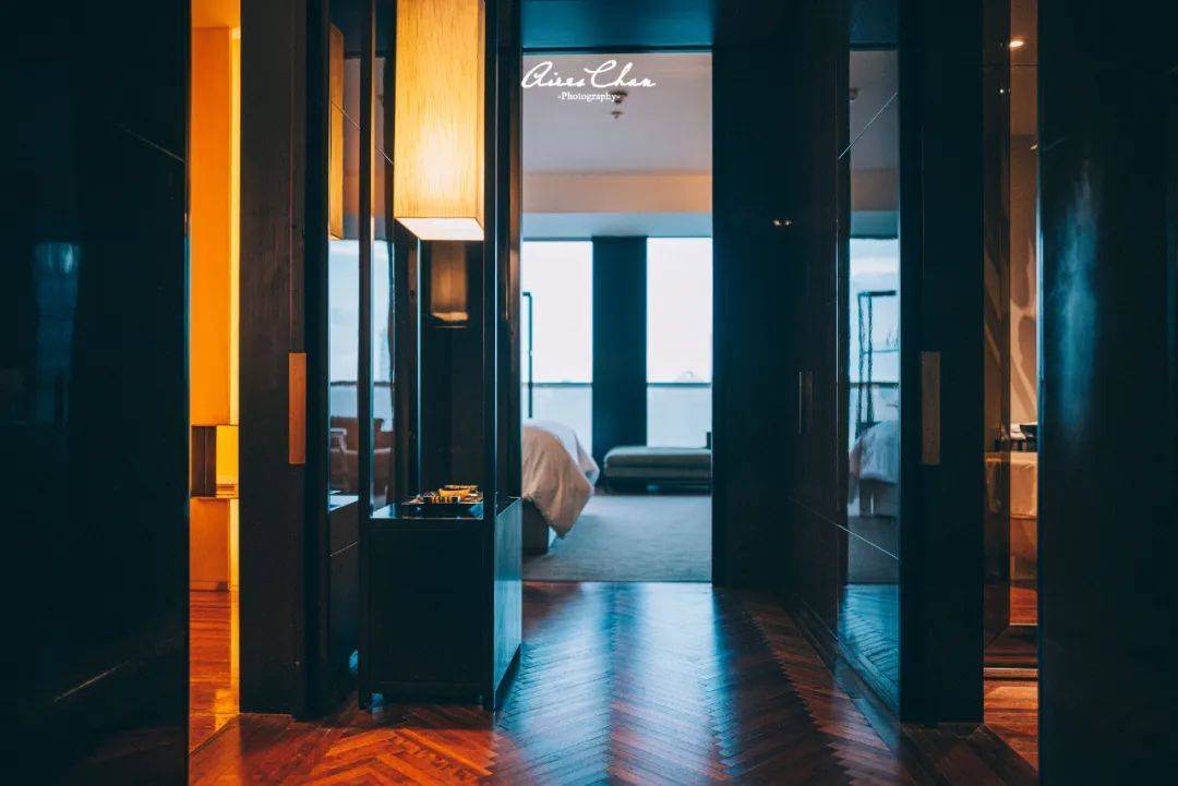 这次入住的是108平米的行政套房,和基础房型一样,很多细节设计和空间布局都「居家」(比如玄关处的换鞋凳)。大量的平移木门将各个空间间隔开来,营造出传统庭院的氛围感,门边的管家柜更是大幅度提升了客房的私密性,需要的物品都可以让管家进行「无接触配送」。